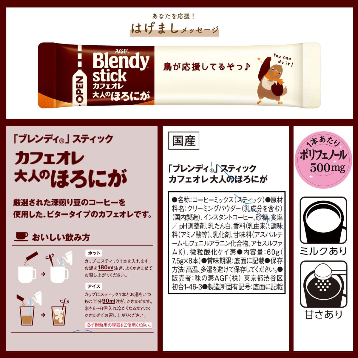 【大人のほろにが】クリーミングパウダー(乳成分を含む)(国内製造)、インスタントコーヒー、砂糖、食塩 / pH調整剤、乳たん白、香料(乳由来)、調味料(アミノ酸等)、乳化剤、甘味料(アスパルテーム・L-フェニルアラニン化合物、アセスルファムK)、微粒酸化ケイ素