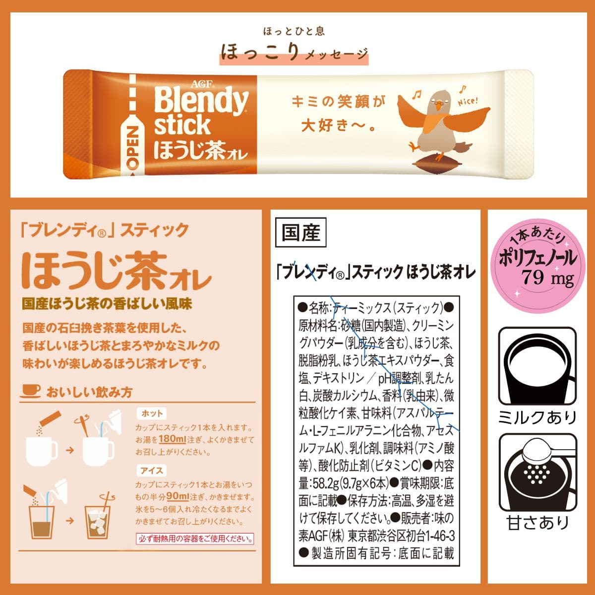 【ほうじ茶】砂糖(国内製造)、クリーミングパウダー(乳成分を含む)、ほうじ茶、脱脂粉乳、ほうじ茶エキスパウダー、食塩、デキストリン / pH調整剤、乳たん白、炭酸カルシウム、香料(乳由来)、微粒酸化ケイ素、甘味料(アスパルテーム・L-フェニルアラニン化合物、アセスルファムK)、乳化剤、調味料(アミノ酸等)、酸化防止剤(ビタミンC)