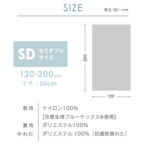 触るとひんやりとする接触冷感素材を使用したキルトボックスシーツの登場です。ナイロン100%の接触冷感性の高い素材で織った生地は肌触りが肌着のようで、しなやかな感触です。