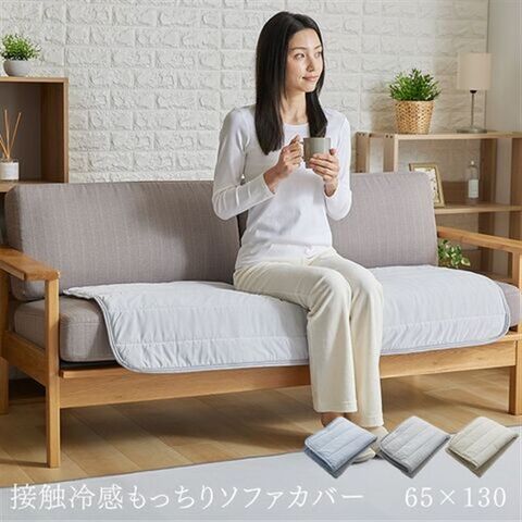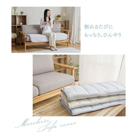接触冷感モッチリソファーカバー 65×130cm グレージュ