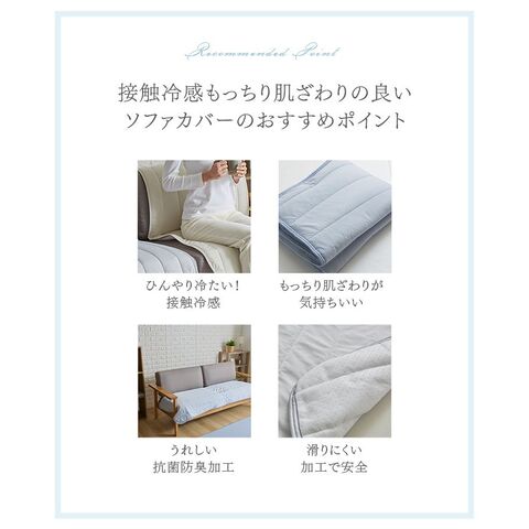 接触冷感モッチリソファーカバー 65×180cm アイスブルー