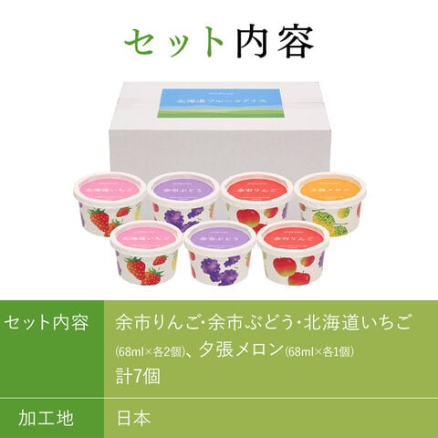 余市りんご・余市ぶどう・北海道いちご各68ml×各2、夕張メロン68ml×1(計7)