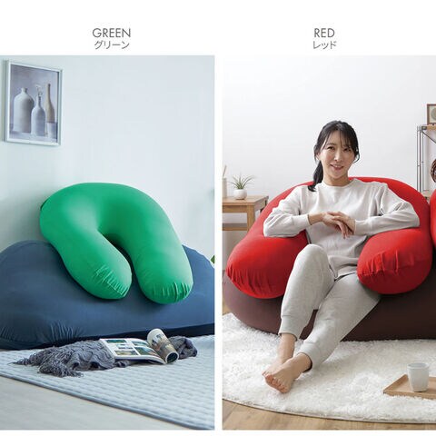 クッションの中身はビーズのため、軽量で持ち運びしやすく、いろんな場所で、ベッドやソファのような使い方ができます。