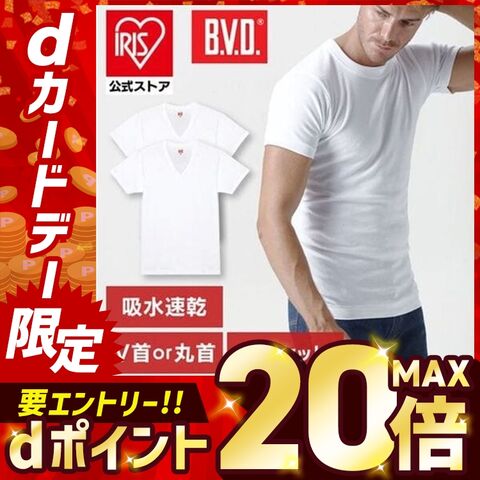 BVD インナー メンズ Uネック Vネック 半袖 2枚組 無地 白 男性用 tシャツ 丸首 V首 送料無料