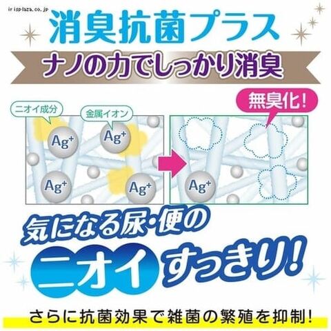尿・汗・便臭をやわらげる抗菌効果のある超強力消臭シートで、気になるニオイも瞬間消臭。