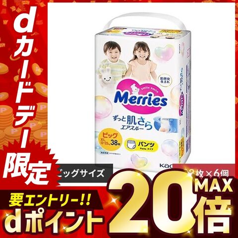 花王 【6個セット】メリーズ エアスルー パンツタイプ ビッグサイズ38枚