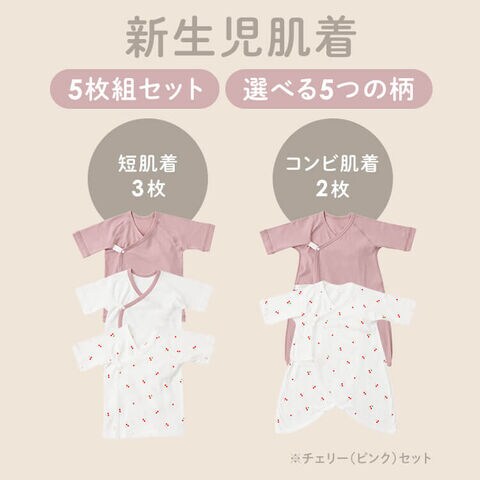 短肌着3枚とコンビ肌着2枚の計5枚組の肌着セットです。