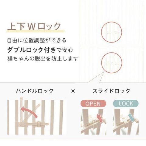 ペットゲート 猫用 飛び出し防止 ドア付き にゃんドア ベージュ 脱走防止 柵 ゲート フェンス キャットゲート 扉式 ハイタイプ 1271107005 [ペット]