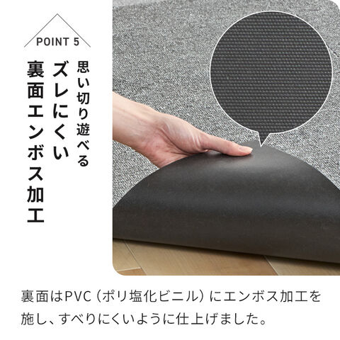 裏面はすべりにくいPVC(ポリ塩化ビニル樹脂)なので、ずれにくく、めくれにくいので快適。