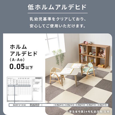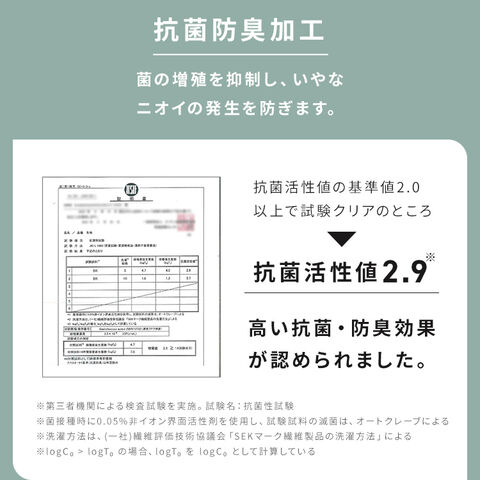 消臭・抗菌防臭・低ホルムアルデヒドの3つの試験をクリア、より快適・安全に過ごせます。