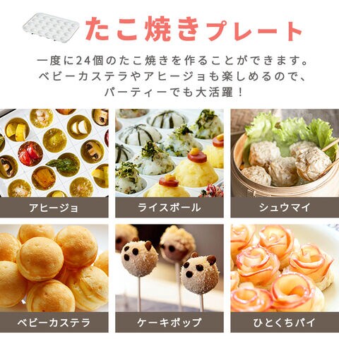 こびりつきにくいセラミック加工で、焼きムラも少なく、アツアツおいしいたこ焼きや料理が作れる!