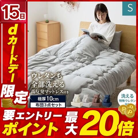 洗える3つ折りマットレス寝具3点セット S グレー【プラザセレクト】