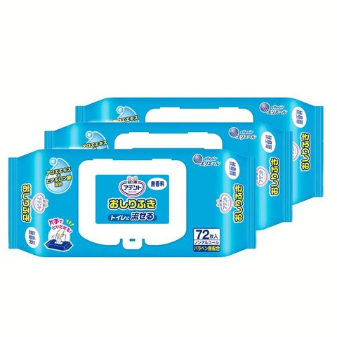 【3個セット】アテント 流せる おしりふき 無香料 72枚