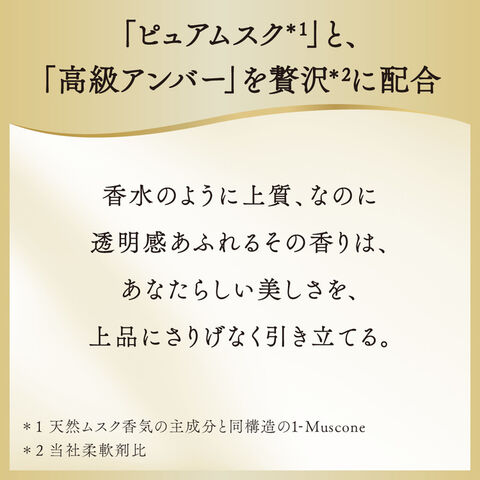 素肌のあたたかさを想わせる「ピュアムスク*1」と、香水には欠かせない「高級アンバー」を贅沢*2に使用。