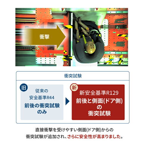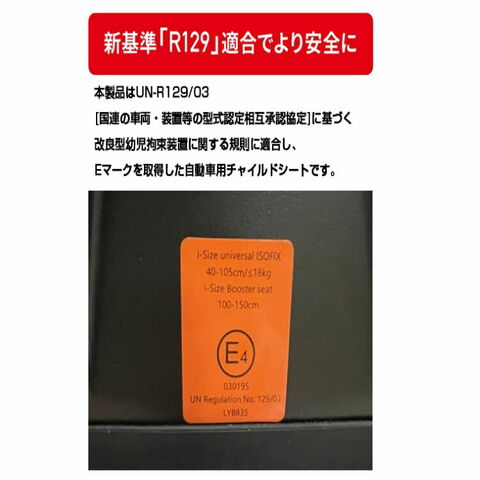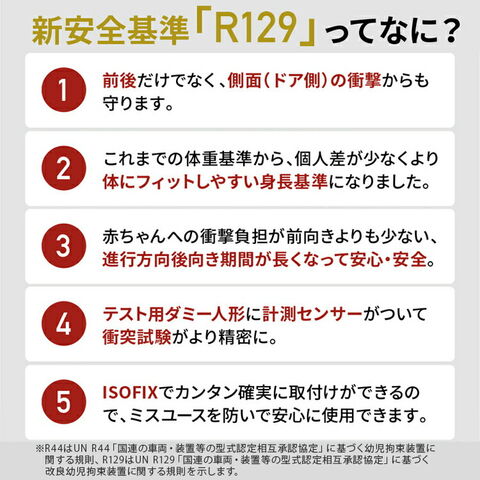 最新安全基準R129適合のISOFIX固定なので取付簡単。