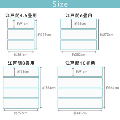 江戸間10畳用 約364cm×約440cm(約91cm×約440cm 4本)