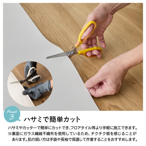 お部屋の広さによってカットされているので敷くだけ簡単、施工がラク!色々なお部屋・シーンに大活躍、敷くだけで理想のお部屋に。