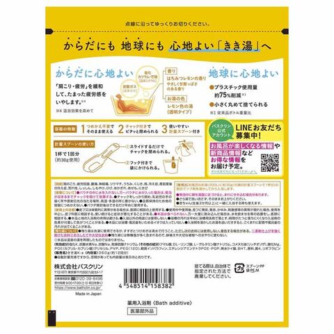・カリウム芒硝炭酸湯:肩こり・疲労回復に。はちみつレモンの香り/レモン色の湯(透明タイプ)