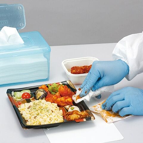 ●こぼれたソース類の拭き取りや容器に付着した汚れの拭き取り