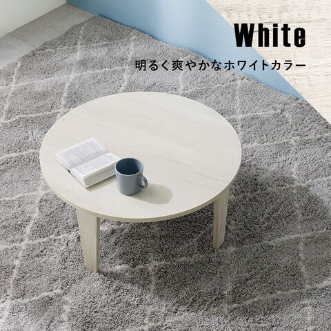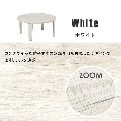 まるで天然木のような古木調の色合いと、木目感の再現にこだわった円形テーブル。