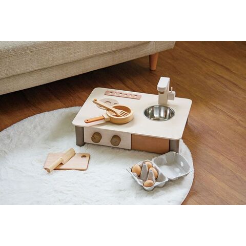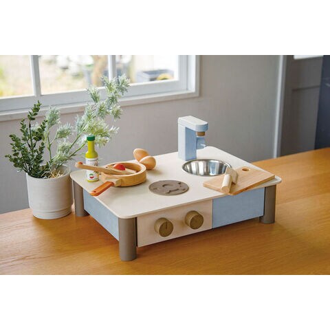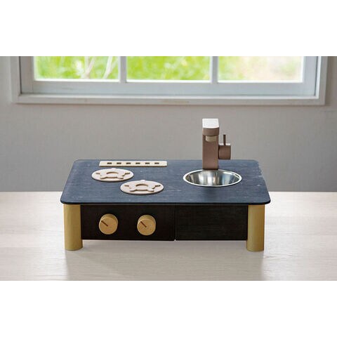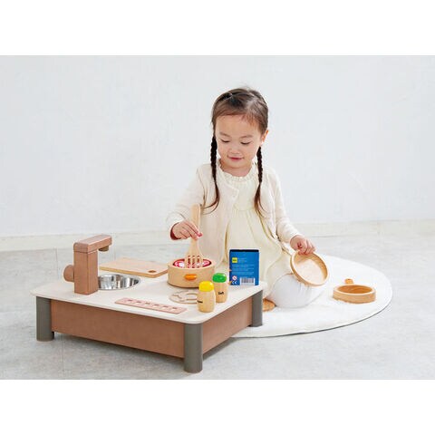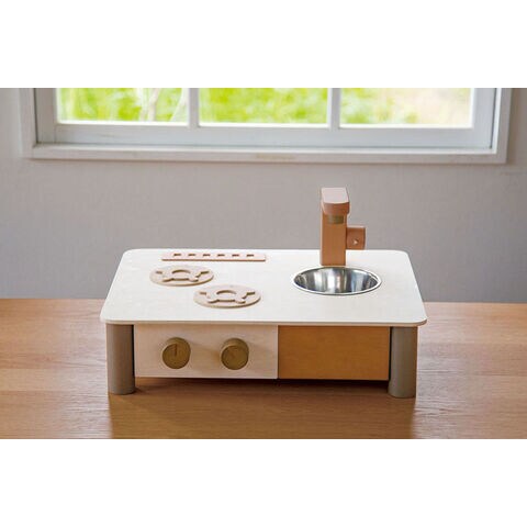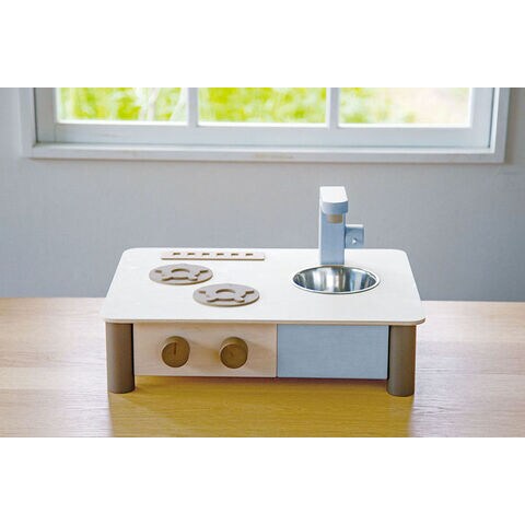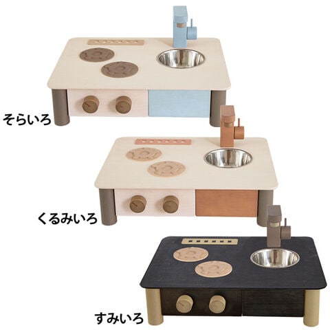 どんなおうちにもすっと馴染む自然でおしゃれな色あいで、くらしに寄り添う木のままごとキッチンです。
