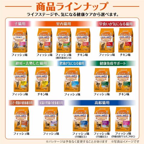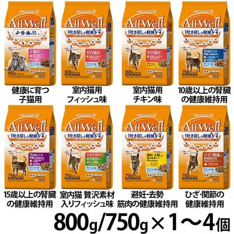 750g(375g×2袋):10歳以上・15歳以上の腎臓の健康維持用、室内猫 贅沢素材入りフィッシュ味、避妊・去勢 フィッシュ味、ひざ・関節の健康維持用