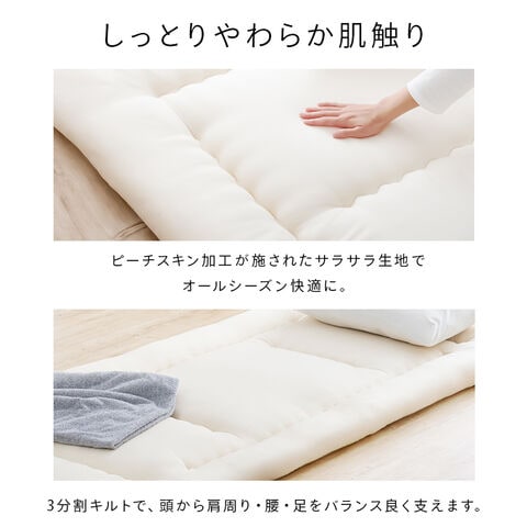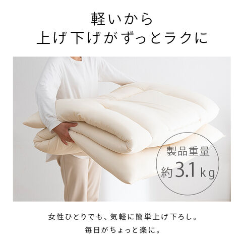 中材に極細繊維のマイクロファイバーわたを使用しているため、寝返りしやすい弾力性があり、床付き感がなく頭部を優しく支えます。