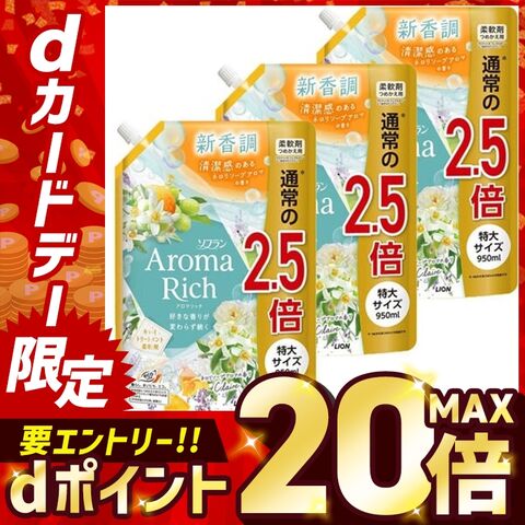 ソフラン 【3個セット】柔軟剤 洗濯 詰め替え ソフラン アロマリッチ クレア ネロリソープアロマの香り つめかえ用特大 950ml 1847 【プラザセレクト】