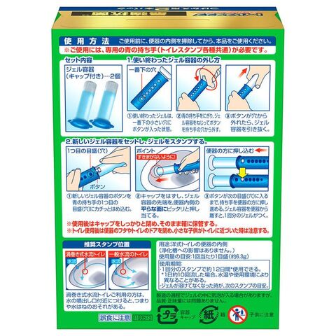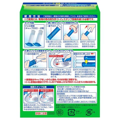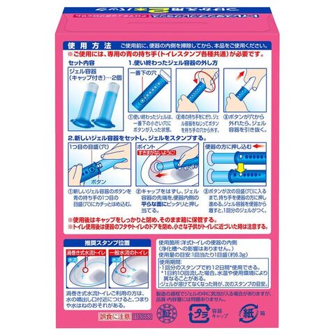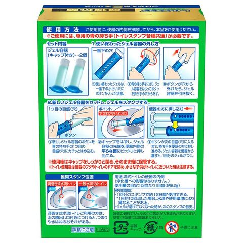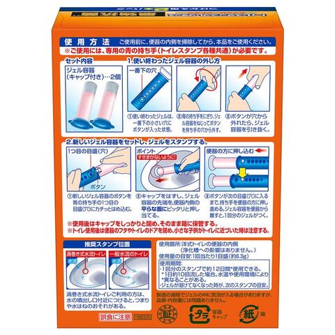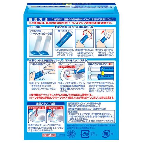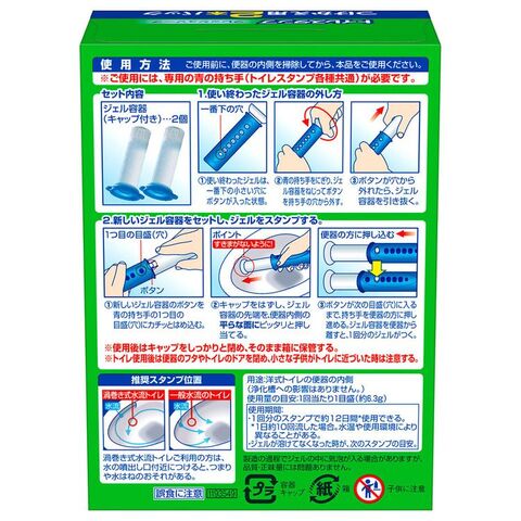 スタンプするだけで流すたびに洗浄・防汚成分が便器全体に広がる。