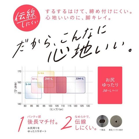 満足 美しく心地いい 後長マチ付 ヒップゆったり 伝線しにくいノンラン設計