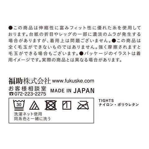 また、乾燥しやすい季節にうれしい静電気防止加工やしっとりうるおうプロテオグリカン・スクワランを配合した福助オリジナルのダブル保湿加工も施しており、するっとはけて、なめらかなタッチのはき心地にこだわった福助の定番タイツです。