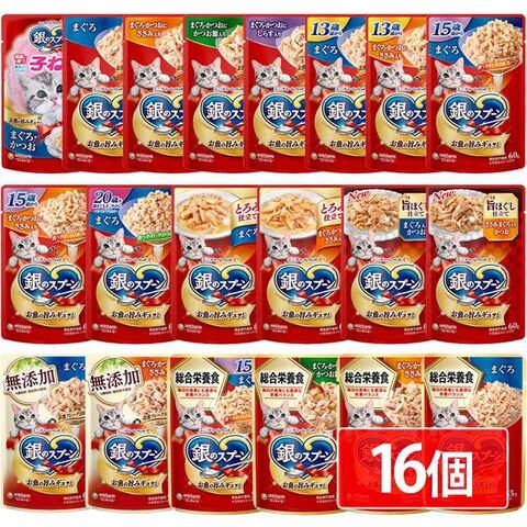 【16個セット】銀のスプーン パウチ とろみ仕立てまぐろ・かつおにささみ入り 60g【プラザセレクト】