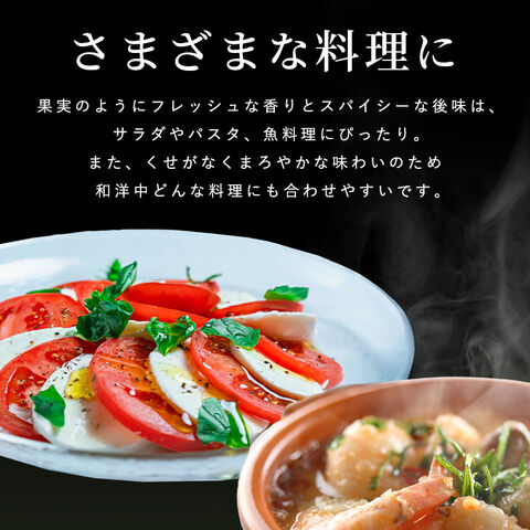 新鮮なオリーブの実の風味が広がり、パンやサラダ、魚料理にひとたらしするだけで、いつもの食卓がワンランク上の美味しさに変わります。
