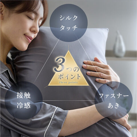 枕カバー シルク シルクタッチ枕カバー 夏用 夏 ひんやり 冷感 涼感 涼しい 冷たい 節電 チャコールグレー