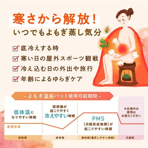 韓国の美容健康法「よもぎ蒸し」から着想を得た下腹部や骨盤周りを温めるナプキン型の温熱パット。