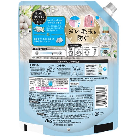 [6個セット] 柔軟剤 洗濯柔軟剤 レノア レノアハピネス 夢ふわタッチ レノアハピネス夢ふわタッチ ウォームコットン&すずらんの香り 詰め替え 詰替 つめかえ 特大サイズ 720ml まとめ買い 業務用 P&G [日用品]