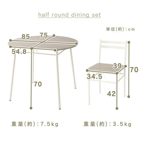ダイニングセット 3点セット ハーフラウンドテーブル シンプル ダイニング3点セット AS-V80HR ブラウン ナチュラル コンパクト センターテーブル 組立式 シンプルデザイン ヴィンテージ風 マルチテーブル 円形