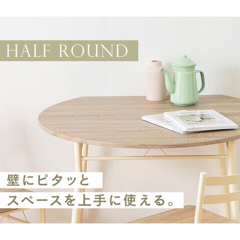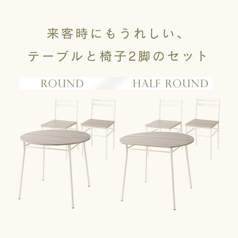 ダイニングセット 3点セット ハーフラウンドテーブル シンプル ダイニング3点セット AS-V80HR ブラウン ナチュラル コンパクト センターテーブル 組立式 シンプルデザイン ヴィンテージ風 マルチテーブル 円形