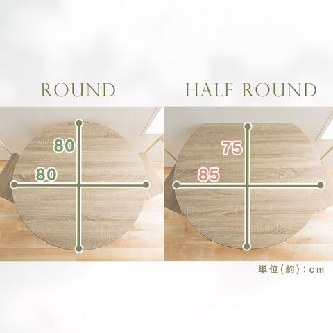 ハーフラウンドタイプは85×75の天板サイズで、省スペースにも対応。
