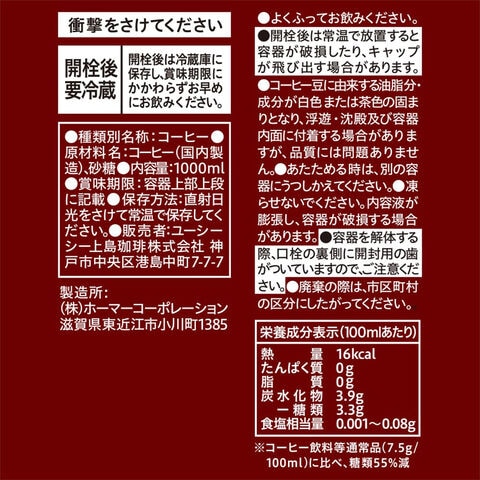 UCC 上島珈琲店 アイスコーヒー 微糖 1000ml×12本 511334 微糖