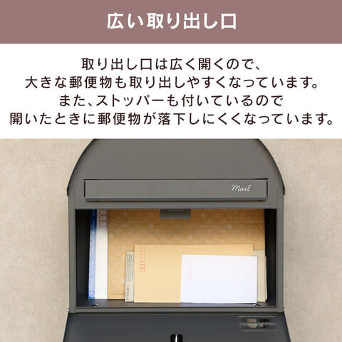 ・スリット窓付:正面扉にスリット窓が付いているため、扉を開かなくても郵便物が投函されているかの確認が可能です。