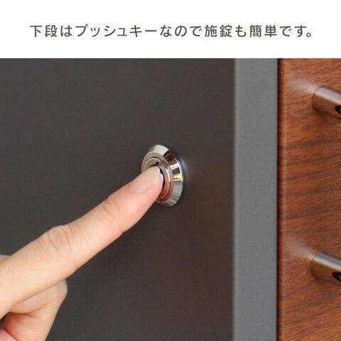 ・セキュリティ:上段は、プッシュキーで簡単に鍵の開閉が可能で、防犯面にも安心です。また、スペアキーが1本付属しております。