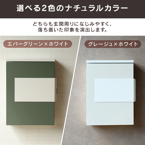 ・2色展開:取出口扉カラーは、落ち着いた深い緑のエバーグリーンとくすんだベージュのグレージュからお選びいただけます。