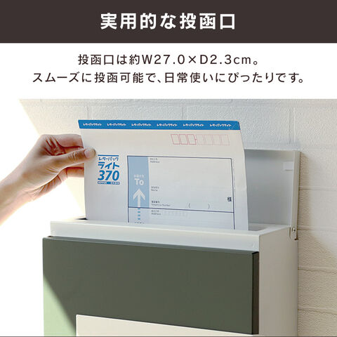 ・ストッパー付き:取り出し口内部にストッパーがついているため、郵便物が前に落ちにくい設計になっております。