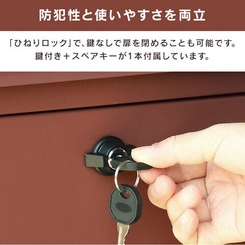 ・セキュリティ:鍵付きなので防犯面に安心です。また、スペアキーが1本付属しています。