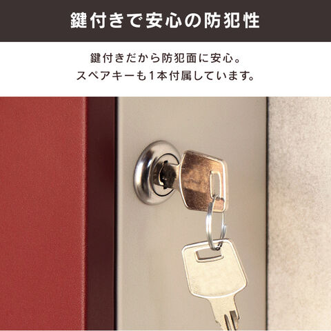 ・セキュリティ:鍵付きなので防犯面に安心です。また、スペアキーが1本付属しています。