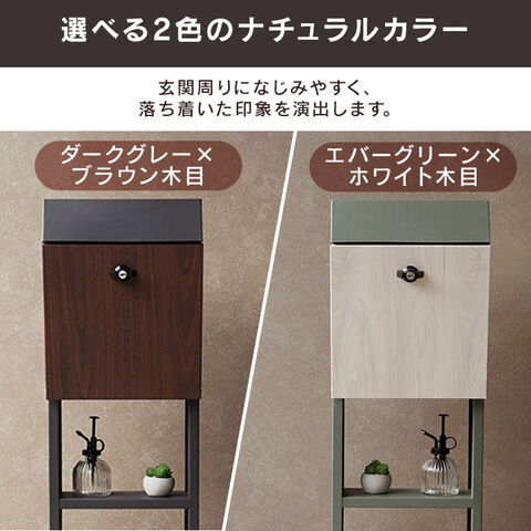 ・2色展開:カラーは、本体カラーが落ち着いたダークグレーと扉をブラウン木目で組み合わせたタイプ。