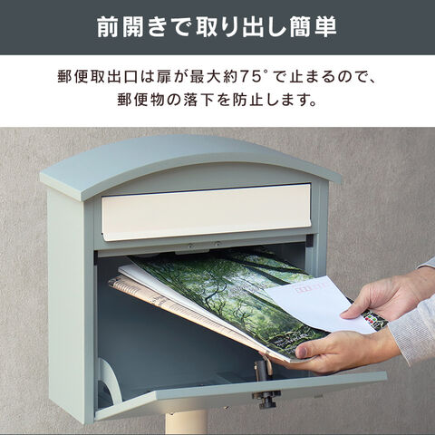 ・郵便取出口は、扉が最大約75°くらいまでにしか開かない構造ですので、郵便取出し時に、郵便物落下の心配がありません。