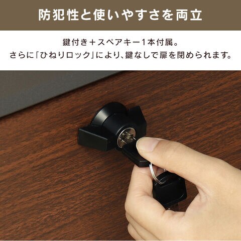 ・セキュリティ:鍵付きなので防犯面に安心です。また、スペアキーが1本付属しています。