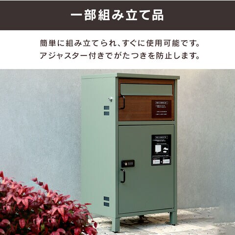 ・キー(上段用、下段用)、アンカーボルト、キーフック付印鑑ケース×2、宅配業者用の配達マニュアル(マグネット式でお好きな場所に貼付け可)×2(上段用、下段用) が付属しており、お客様で追加でご用意頂くものは特に必要なく、すぐにご使用頂けます。